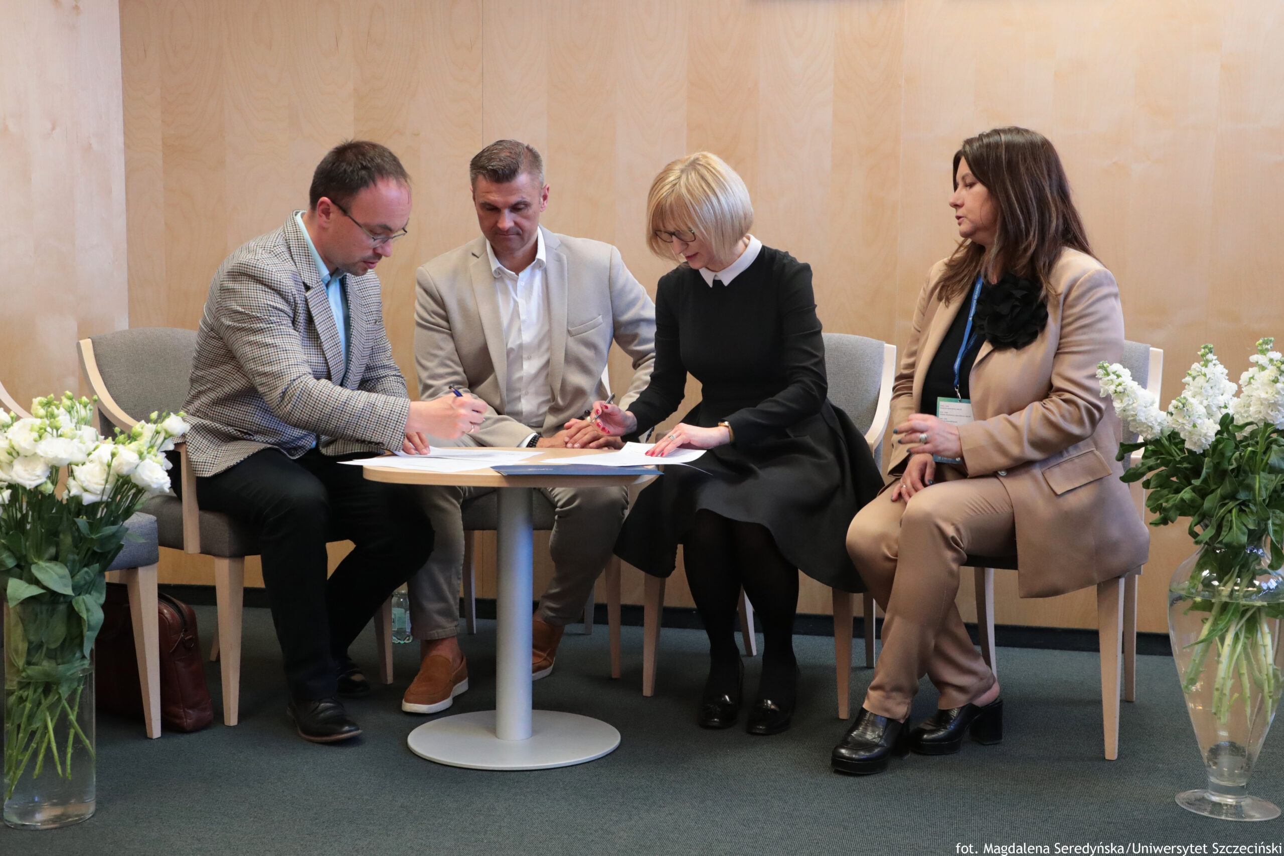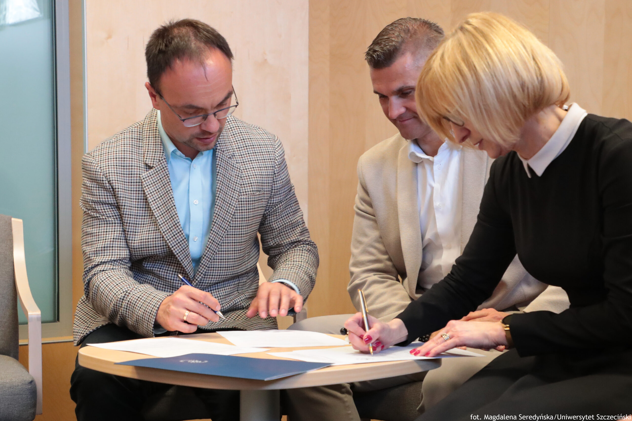 Po spotkaniu podpisano porozumienie o współpracy pomiędzy Laboratorium Drogowym Szczecin Sp. z o.o., reprezentowanym przez dr inż. Grzegorza Szmechela – Wiceprezesa Zarządu a Wydziałem Nauk Ścisłych i Przyrodniczych US.